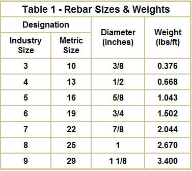 Rebar Sizes & Weights